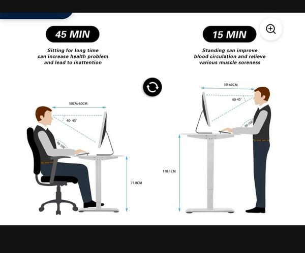 - cho phép người dùng chuyển đổi tư thế ngồi hoặc đứng phù hợp với công việc, cải thiện tư thế cho sức khoẻ